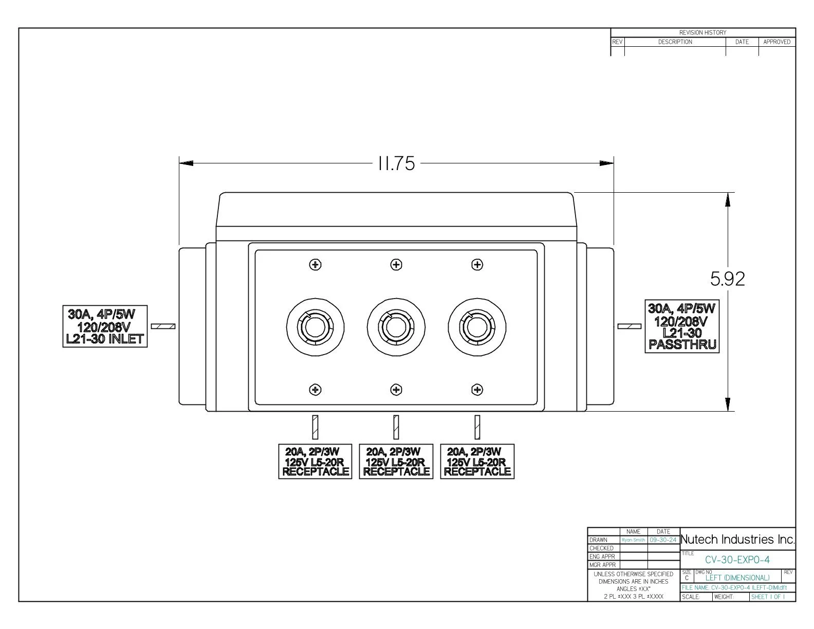 1 EACH 30AMP 120/208V, 4P/5W (NEMA L21-30) PASSTHRU